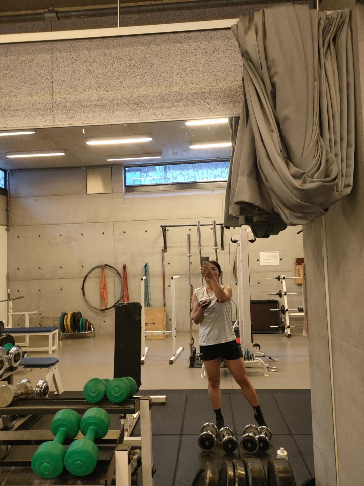 The atmosphere in the school gym is generally healthy and not as intimidating as the private gyms outside the school might be.