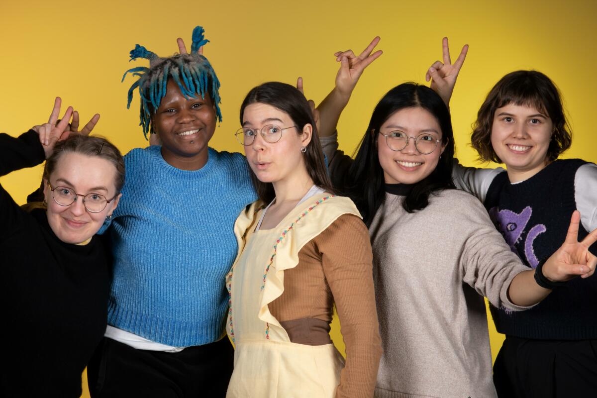 Student ambassadors Catrin, Snowdrop, Elle, Rong-Ci and Anastasiia introduce themselves. Want to ask about fine arts studies? You can reach us at: kuva.student.ambassadors@uniarts.fi.