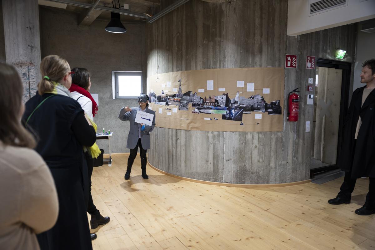 I was a pigeon tour guide, leading guests from Tori in the Theatre Academy Lobby area to the Majakka space. Before everyone arrived at the space, I introduced myself to the visitors while casually sharing pigeon information I had learned over the working process and wearing a pigeon mask and costume.