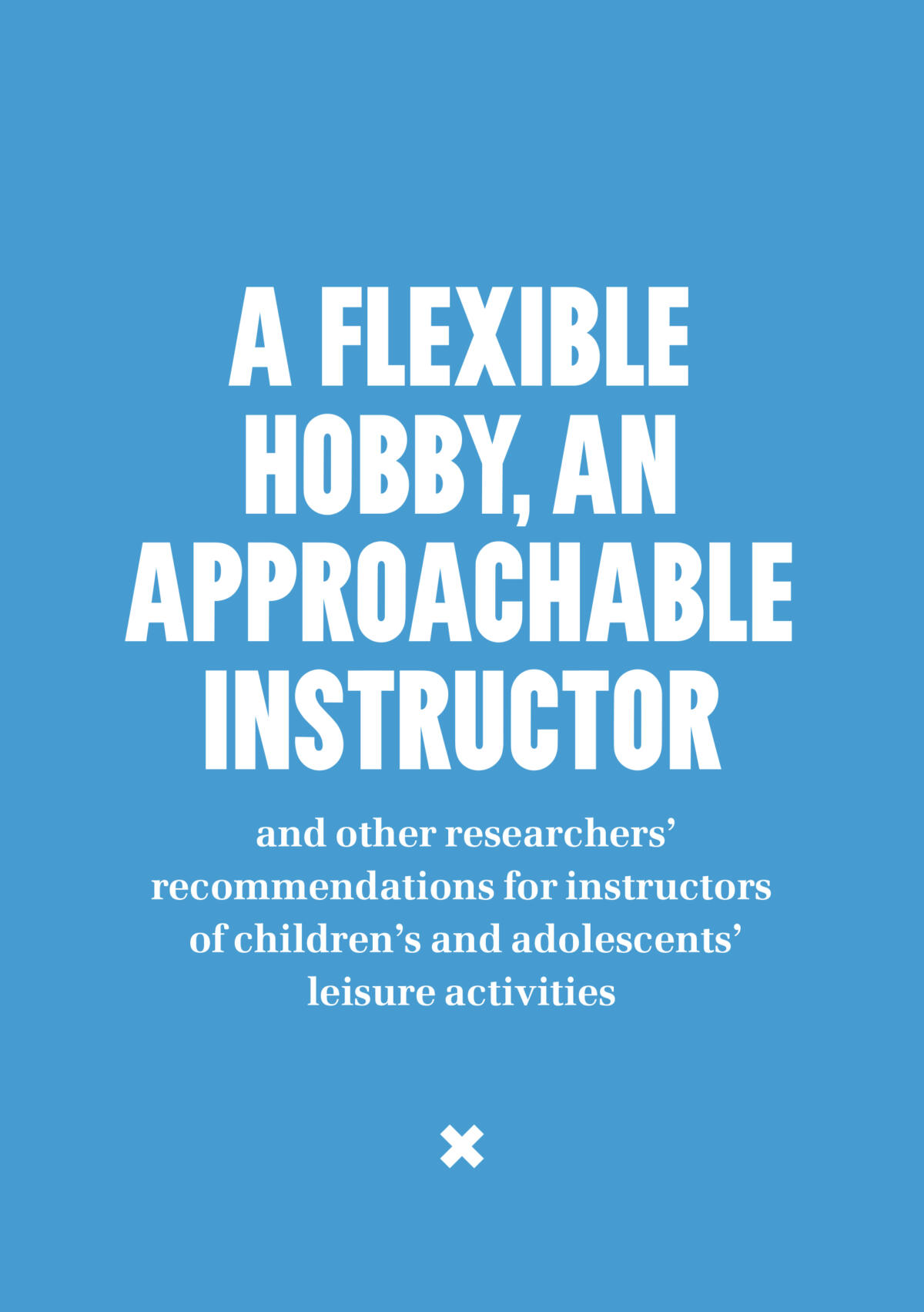 A flexible hobby, an approachable instructor and other researchers’ recommendations for instructors of children’s and adolescents’ leisure activities is a publication aimed atinstructors and coaches of children’s leisure activities.The publication consists of concise articles by researchers and experts on factors related to leisure activities that foster favourable growth and development in children and young people, motivate them to pursue recreational activities and to enjoy their activities and advance in them. The guide also includes recommendations to instructors and coaches.