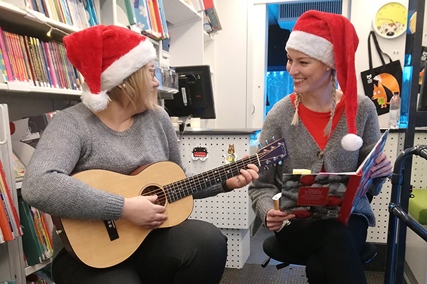 Lisäksi musiikkikasvatusta ja runoja vietiin syksyn aikana niiden luokse, jotka eivät kirjastoon itse enää pääse. Runot ja tutut laulut saivat palvelutalojen asukkaat laulamaan, liikkumaan ja muistelemaan heille merkityksellisiä asioita. Aivotutkimuksen mukaan musiikilla on aivotoimintaa parantava ja jopa korjaava vaikutus. Mieluinen musiikki tukee ikääntyvän ihmisen identiteettiä, sekä auttaa tunteiden käsittelyssä. Lisäksi musiikin aktiivinen harrastaminen ehkäisee yksinäisyyttä sekä ylläpitää toimintakykyä ja itsetuntoa. Tuomalla runoja, tarinoita ja musiikkia palvelutalon asukkaiden arkeen voidaan tukea elinikäisen oppimisen ja osallisuuden mahdollisuutta, vaikka oma toimintakyky olisi jo heikentynyt. Syksyn kokemukset vahvistivat käsitystämme, että tavoitteellinen musiikkikasvatus tulisi olla mahdollista myös palvelutaloissa.