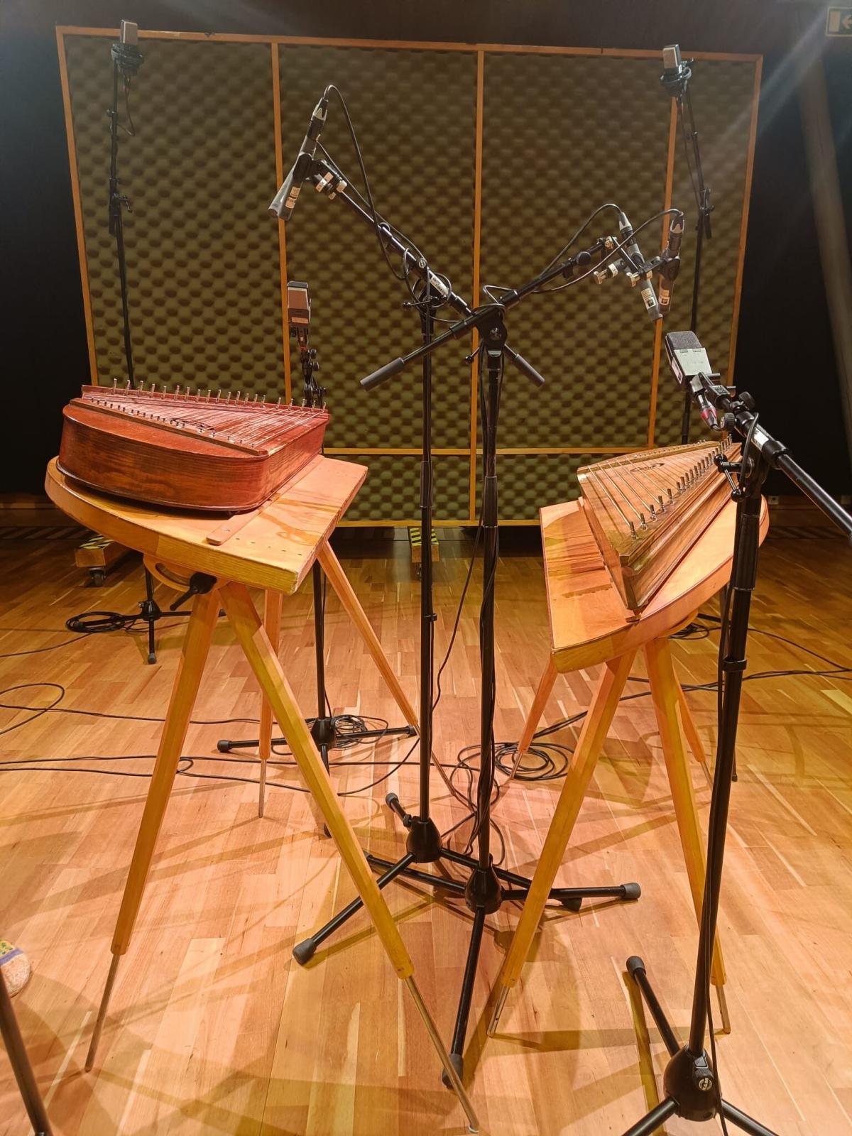 Syvälle-kollektiivin jäsenet, kansanmusiikin koulutusohjelman lehtorit Pauliina Syrjälä ja Hanna Ryynänen aloittivat uuden vuoden duolevynsä äänityksillä Järvenpään Kallio-Kuninkalassa 9.–10.1.2026. Duon instrumentaatiossa on kaksi Saarijärven kanteletta, joiden rikkaat soinnit ja innostavat soittotavat toimivat loputtomana inspiraation lähteenä yhteiselle työskentelylle. Duoalbumin musiikki syntyi alkuvuoden kirpeinä pakkaspäivinä yhdessä improvisoiden, ja tässä blogikirjoituksessa jaamme ajatuksiamme äänityspäivistä sekä jaetusta improsäveltämisen praktiikastamme.