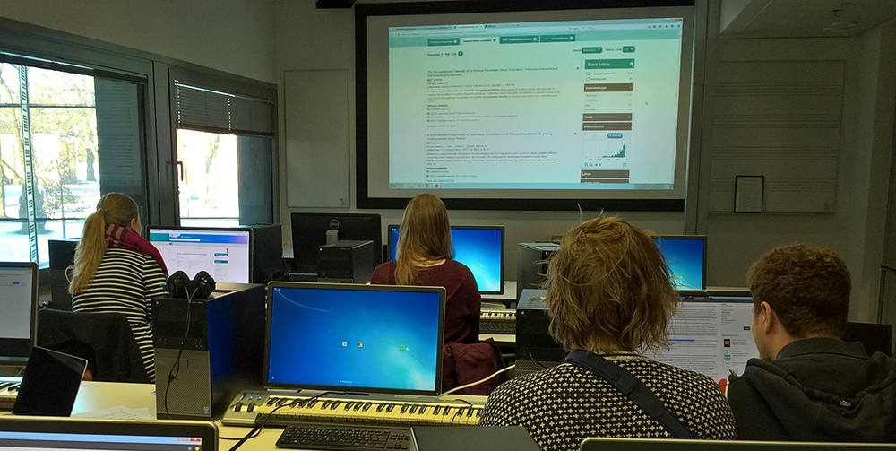 Sibelius-Akatemian musiikkikasvatuksen kandiseminaarilla oli tiedonhankinnan opastusta juuri Lainan päivänä ja opiskelijat pääsivät testaamaan ja tutkimaan Finnan eri ominaisuuksia. Opiskelijoiden mielestä Finna oli pääosin suhteellisen helppo ja selkeä ja myös helppolukuinen. Toisaalta eri välilehtien kanssa piti olla tarkkana. Jos esimerkiksi on vaikkapa Vaari-varastokirjaston tietokannan välilehdellä ja tekee hakuja musiikista, ei välttämättä saa mitään tuloksia. Kunnes huomaa vaihtaa välilehden ja palata kirjaston aineistoihin. Opiskelijat kiinnittivät huomiota siihen, että joitakin rajauksia voi tehdä vasta haun tekemisen jälkeen. Toisaalta tätä ”jälkirajausta” pidettiin myös Finnassa hyvänä piirteenä.